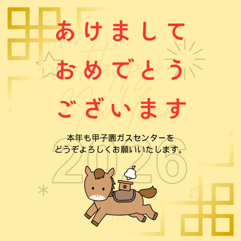 その他 2026年 新年のご挨拶 2026.01.07 明けましておめでとうございます。本年もどうぞよろしくお願い申し上げます。ガス機器やリフォームのご用命はぜひ甲子園ガスセンターまでご連絡ください。 2026年年末年始営業のお知らせ 前の記事